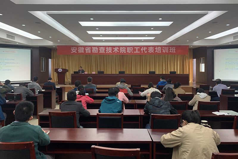 为认真落实习近平总书记关于产业工人队伍建设改革的重要指示,加强我院职工代表大会规范化建设,11月11日,院工会举办职工代表培训班,特邀安徽省直机关工会组宣部部长杨广作《浅谈如何当好职工代表》专题辅导。省地矿局党委工作部副部长汪杰出席,院工会副主席郭佳主持培训会。院领导、职工代表、工会委员、分会主席等60余人聆听了报告。