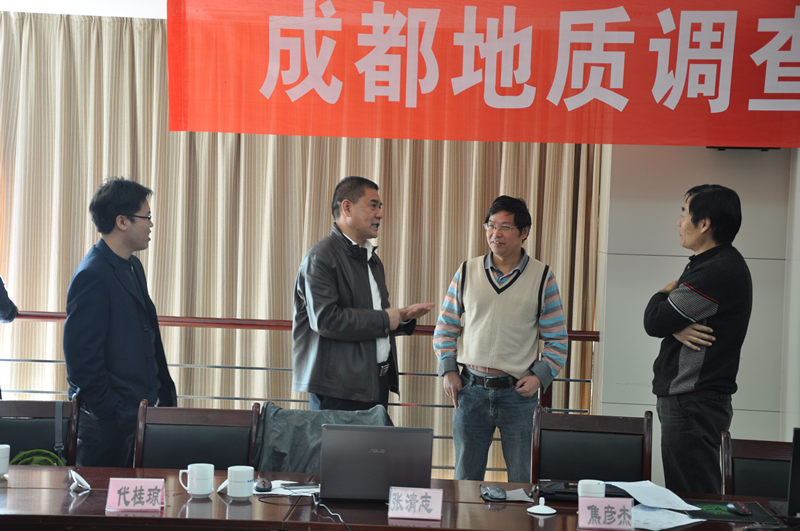 院长战双庆与成都地调中心方法技术室负责人交谈