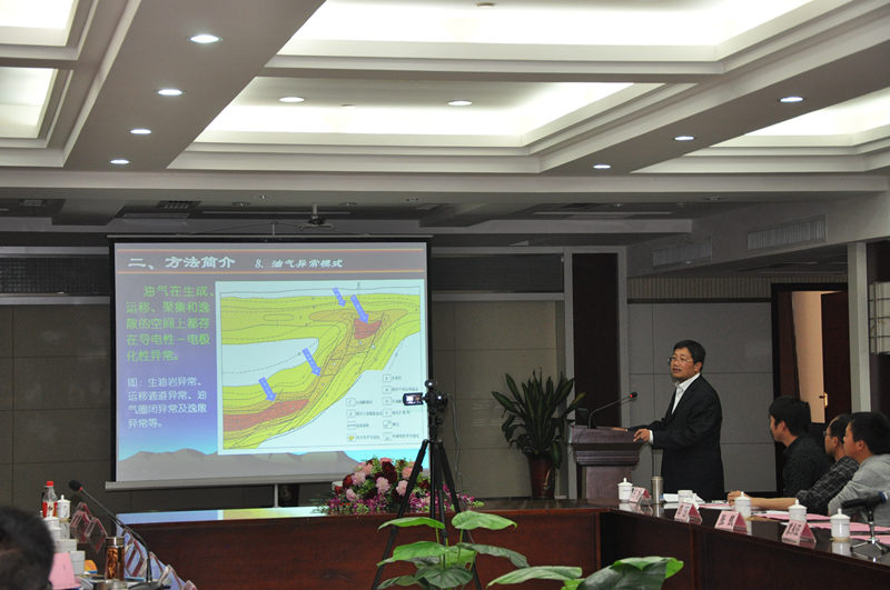 副院长许传建进行《复电阻率法(CR)在石油天然气、金属矿勘探中的应用效果》专题交流