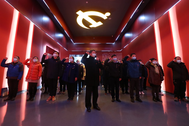 在讲解员的引导下,全体人员依次参观了历程篇、践行篇、警示篇、启示篇四个展厅,全方位回顾了中国共产党筚路蓝缕的百年纪律建设史,以及安徽省尤其是十届省委以来全面从严治党、党风廉政建设和反腐败斗争成果。通过观看展厅图文视频、运用互动查询、切身感受模拟场景、体验光影科技等形式,一个个真实的违法犯罪案例、一封封发人深省的忏悔信、一声声来自铁窗的自责,触动人心,让大家受到了一次深刻、直观的党性党风党纪教育。在许传建同志领誓下,全体党员庄严宣誓,重温入党誓词,进一步坚定了清正廉洁思想信念,切实增强使命感与责任感。
