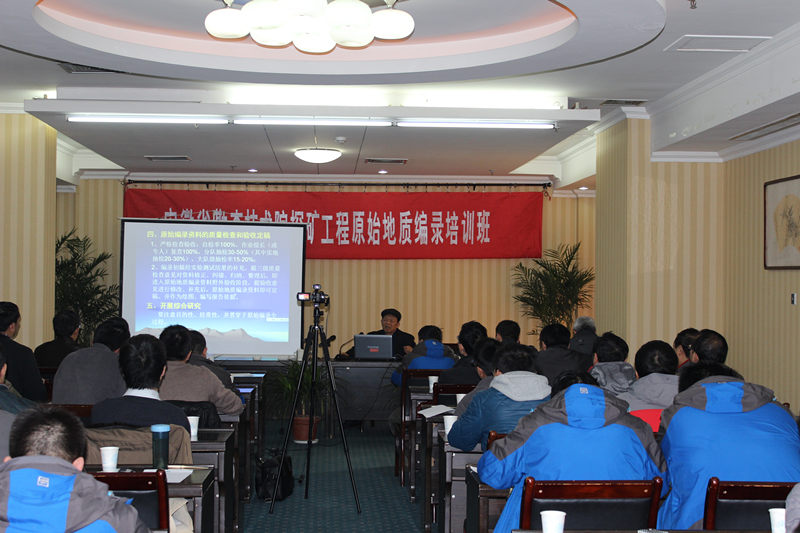 培训班采取理论授课和现场实训相结合的方式进行。在理论讲座中,刘国华教授围绕探矿工程原始地质编录的主题,详细讲解了探槽、探井、钻孔编录的基本方法和工作程序,并结合图片实例重点强调了实际操作的技术要领。刘教授的讲解生动细致、内容详实,令参培人员受益匪浅。