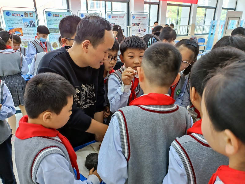 本次活动以“走进科技 你我同行——打开地学之门”为主题,通过岩石讲堂、观摩交流等方式,围绕岩(矿)石知识、地质灾害等方面开展。岩石讲堂,结合小学科学课的矿物与岩石课程内容,通过我院的30余件岩(矿)石标本和10张岩(矿)石知识展板,向小学生传授岩(矿)石知识,使他们对岩(矿)石有了感性的认识,了解岩(矿)石的形成、勘探、开采过程以及岩(矿)石在我们生活、经济建设中的作用。小学生们在学习地质灾害知识,识别地质灾害的同时,掌握了自我保护技能。
