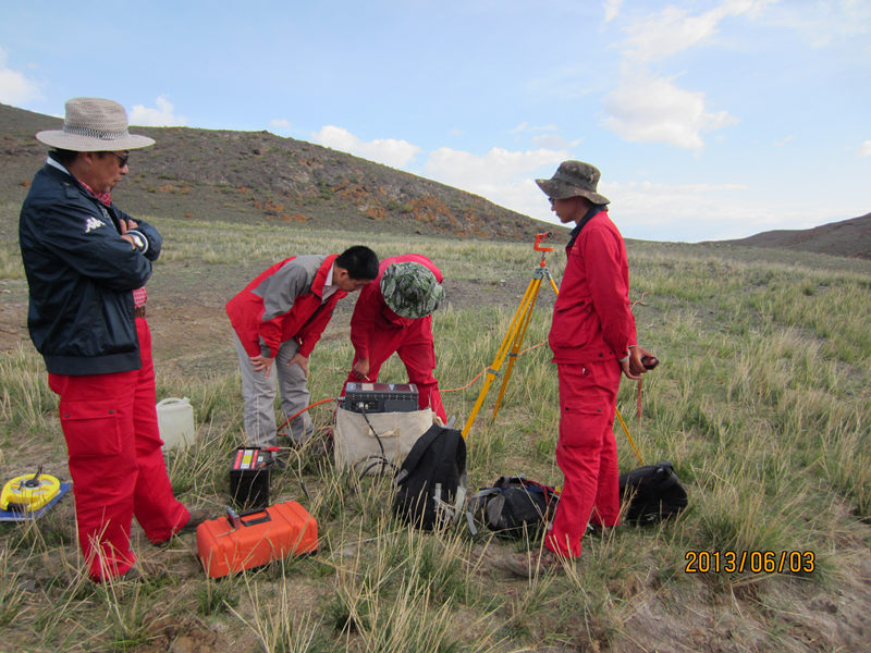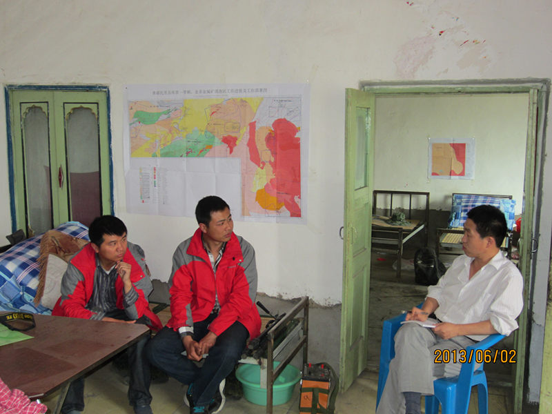 在项目组驻地,张凯听取了野外一线工作人员对项目的实施进度以及野外工作的具体操作规范流程的简短汇报,对项目前期的仪器试验、施工组的数据记录规范程度、内业组的资料整理情况进行了详细检查并作出了相应的整改意见。之后他跟随项目组EH4方法组、电法组到野外实地检查施工情况。在野外现场,张凯认真查看了数据采集小组的野外实际选点,实际观测EH4、电法野外实际仪器操作流程,随机抽查了已完成的7个测点点位坐标和标记情况。