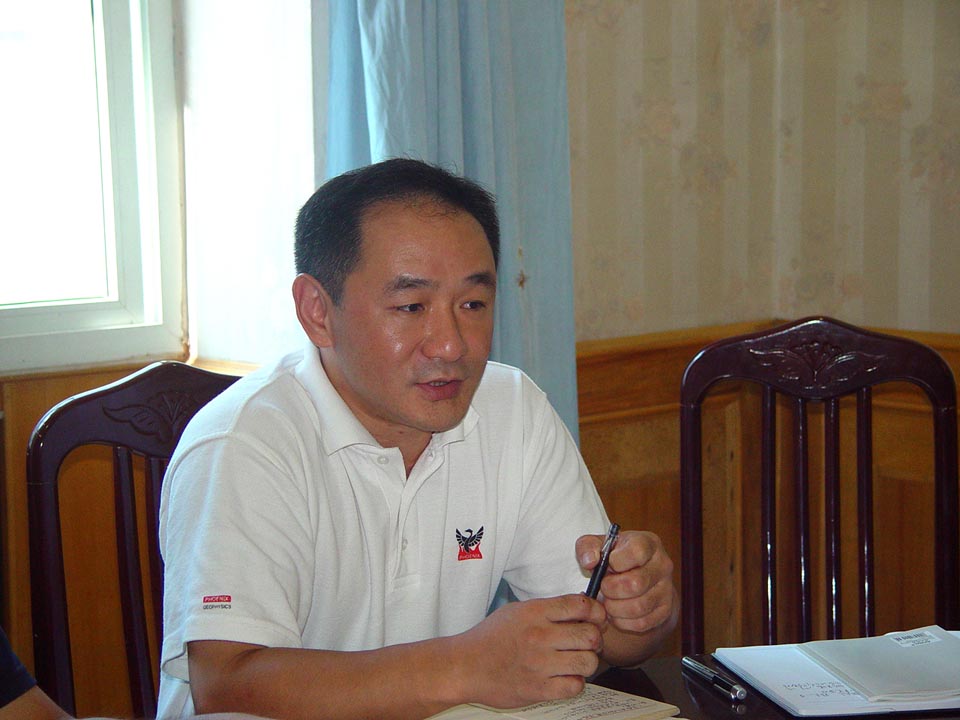 物探分院支部书记蔺国栋同志介绍单位情况 电法所所长徐自生同志介绍单位情况