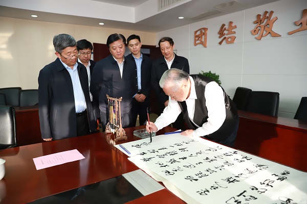 考察期间,宋瑞祥参观了院史馆、科普基地及仪器陈列馆,听取了安徽省地矿局新一轮找矿突破战略行动情况汇报,详细了解地质找矿取得的新进展、新突破,对地勘单位深化改革、地质找矿、矿业权管理等提出殷切期望,并亲笔题词:“安徽省勘查技术院,发扬老一物攻关攀登精神,把万米尺度透明地壳建立数字模型,为能源资源环境灾变探索服务,开创地质勘查新局面”。