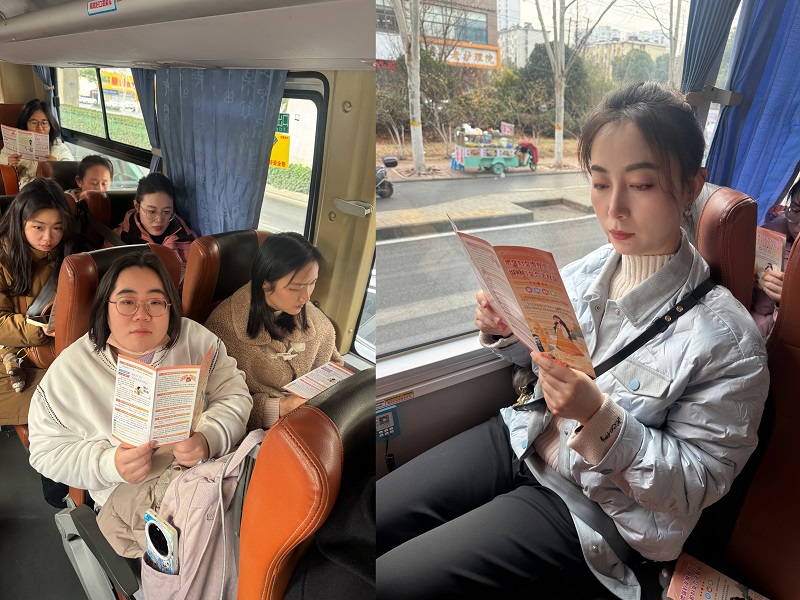 活动当天,阳光明媚,春意盎然。女职工们早早集合,在统一乘坐大巴的路途中,领取由院工会发放的《维护妇女合法权益知识问答》折页和“创新争优 爱帼爱她”“巾帼风采 与爱同行”“关爱女性迎三八 法治春风进万家”等妇联普法口号标牌。大家一路学习、一路交流,提升了法治素养,增强了利用法律武器维护自身合法权益的意识。