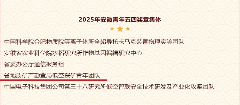 低空探矿青年团队获2025年安徽青年五四奖章集体荣誉称号