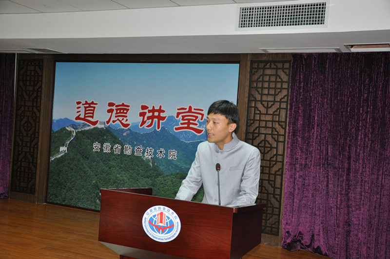 在中央提出大力培育和践行社会主义核心价值观的倡导下,我院积极推进道德建设活动开展,道德讲堂首讲紧贴地质事业发展和我院工作特色,以弘扬“三光荣”精神,爱岗敬业奉献开题,院党委书记汪青松首先作了《继承发扬三光荣优良传统,培育践行社会主义核心价值观,为创造我院美好未来凝聚强大精神支撑和力量源泉》的主旨讲话,向全院提出了要求和希望。随后通过“做反省、唱歌曲、看短片、讲故事、谈感悟、诵经典、送吉祥”等环节,以“身边人讲身边事、身边人讲自己事、身边事教身边人”的形式宣讲了我院资深技术专家丁鹏飞教授献身地质事业半个多世纪的感人事迹,在宣讲员于海充满激情的讲述下,听讲的每一个人都为之深深感动,纷纷表示受益匪浅,享受了一次丰富的思想盛宴。来自4个不同工作岗位的职工在会场饱含激情的抒发了各自的内心感受,“向奋战在我院野外一线的所有同事们致敬”,不仅是他们的肺腑之言,也表达了全院干部职工的共同心声。