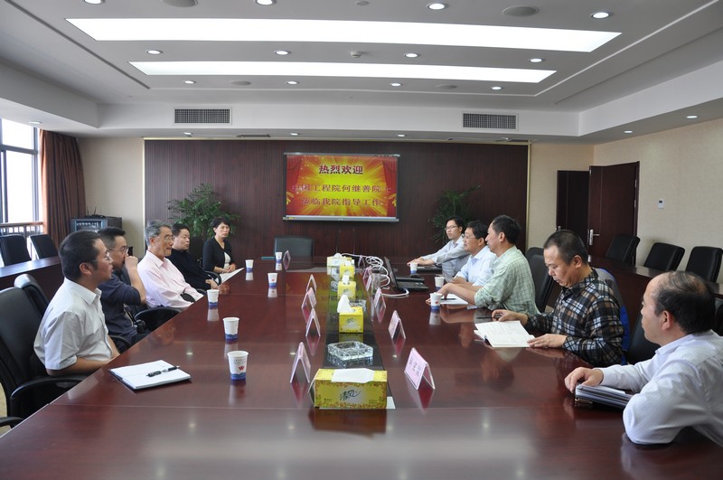 何继善院士首先来到安徽省电法勘探重点实验室,详细了解我院建设电法勘探重点实验室的工作进展,并参观了我院仪器陈列室。随后与我院领导班子成员进行了座谈。座谈会上,许传建院长向何继善院士一行介绍了我院的基本情况,特别是近三年来我院承担的石油勘探、页岩气勘查项目等。院党委书记兼总工程师汪青松汇报了安徽省电法勘探重点实验室的基本情况以及今后的发展方向。听完院党政主要领导的工作介绍和汇报后,何院士指出,安徽省勘查技术院是国内的一支优秀的物化探队伍,人才济济、实力雄厚,科技成果众多,方法技术一流,电法重点实验室依托在安徽省勘查技术院当之无愧。他希望我院加强综合研究、加大科研力度,不断提出新理论,推出新方法,创新新技术,争取早日把电法重点实验室建设成为国内一流的电法勘探重点实验室。充分利用我院和湖南继善高科技有限责任公司双方的优势,加强沟通,优势互补,积极开展密切合作,建立长期战略合作伙伴关系。座谈会上,双方达成了一致意向,决定将进一步就合作细节进行探讨并尽快落实相关具体事宜,以促进双方合作朝着健康、协调、双赢的目标不断深入推进,争取早日取得新成果。