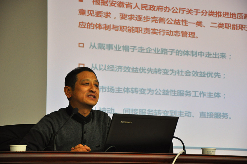 在题为《新时期安徽省水工环地质工作方向与思考》的报告中,方星处长结合地勘事业单位改革的大环境,深刻分析了转型期水工环工作的新特点,并结合安徽省地质环境条件,系统地介绍了省地矿局正在进行以及即将开展的水工环工作,进一步明确了水工环研究发展的方向。方星处长还列举了物化探方法在开展水工环工作中已取得的显著成果,为指导我院物化探方法在水工环领域中应用的新机遇开拓思路,令全院职工视野豁然开朗,受益良多。(总工办 院党办)