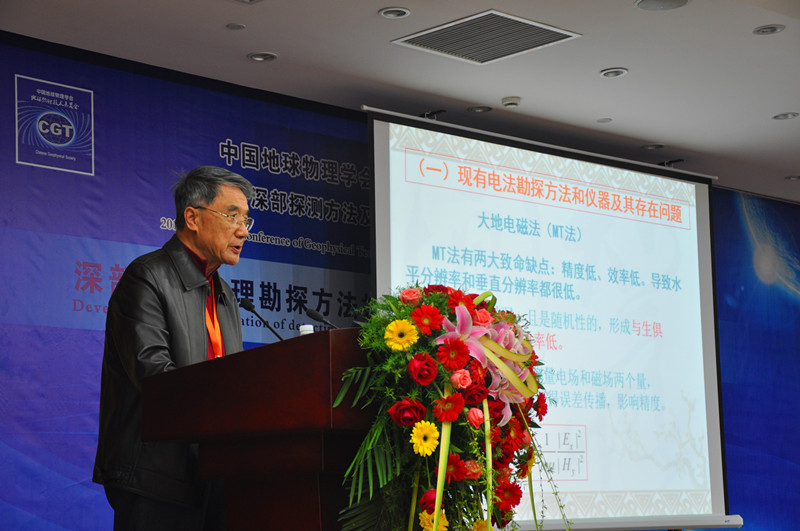 此次会议的主题是“深部地球物理勘探方法技术及抗干扰地球物理仪器的研发与应用”,滕吉文院士作了题为《0+1和1+△与地球物理学的发展进程》的报告、何继善院士作了题为《广域电磁法及其在页岩气勘探中的应用》的报告。共有44个报告在大会上作了专题汇报交流,内容涉及地球物理方法技术在深部资源勘查、深部立体地质结构研究等领域的研究成果及应用,地球物理新方法、新技术、新仪器的探索研发。来自科研院所、高校及应用一线的学者和专家就无线自定位地震勘探系统研制与应用、伪随机信号电法仪器的“第二方案”算法、高精度冷原子干涉重力测量基准研究、复杂地层条件下精细地震勘探基本问题和技术推进、时间域航空电磁探测仪器及应用等诸多方面做了精彩报告。我院党委书记兼总工程师汪青松、院副总工程师兰学毅、二级教授崔先文分别在会上作了《综合物探深部和覆盖区找矿勘查技术体系研究与应用实践》、《铜陵矿集区地质约束的三维地质建模》、《复电阻率法的视谱参数反演》的专题报告。