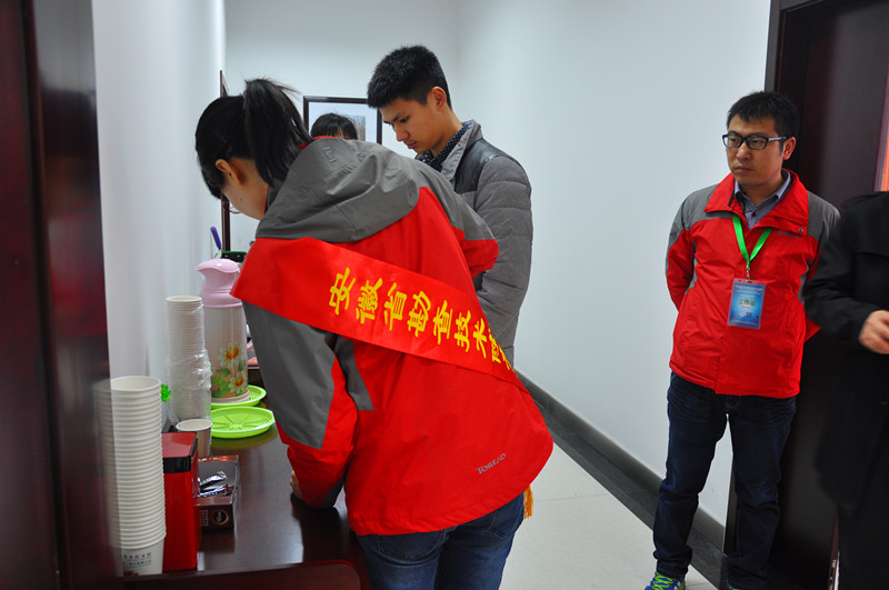 虽说会议时间是3月21日至22日,但会务组的9名小伙儿在3月20日便开始忙碌起来。他们统一着装,带上接站牌,兵分三路来到合肥新桥机场、合肥火车站和合肥火车南站,为前来参会的代表接站。乘坐火车的参会代表人数众多,抵达时间各不相同,志愿者们在火车站一待就是一天,对每位到站的客人进行身份核实和信息登记,还有现场前来报名的代表通过主办方与志愿者取得电话联系,顺利找到了接站点。由于任务紧凑,小伙子们都自备干粮解决了午饭。小车班驾驶员师傅们同样全天奔波在机场、车站、单位和宾馆之间,为了接到路程远的参会代表,有的师傅甚至在火车站等到半夜十二点。其中一位驾驶员接到临时接站任务,来不及取接站牌,他便在出站口与对方通话,通过仔细观察,从众多的出站旅客中顺利找到了抵达的代表。