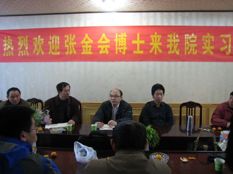 汪青松副院长(左二)代表院欢迎张金会博士(左三)到我院实习