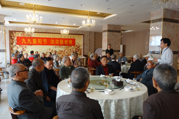 活动中,院聘专家吴之训接受了青年职工送上的鲜花,年轻的退休职工王曙霞讲述了热心帮助离退休职工的故事,目前在我院参加工作最早,党龄最长的刘杰山介绍了保持身体健康的秘诀,正在老年大学进修声乐的李兰华为大家献上了《最美不过夕阳红》,陈春兰为大家演奏了口琴并乘兴高歌一曲。